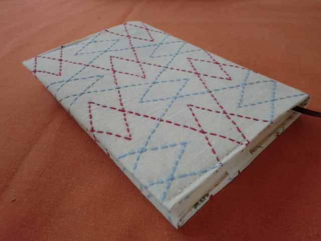 刺し子 「つなぎ山型」文様の ブックカバーです。